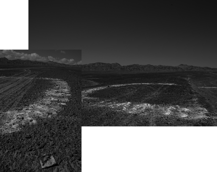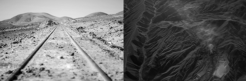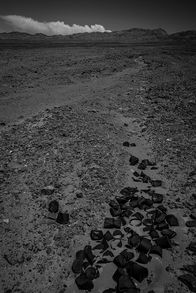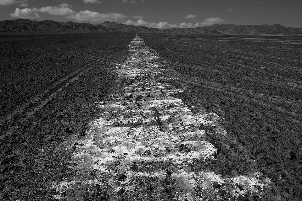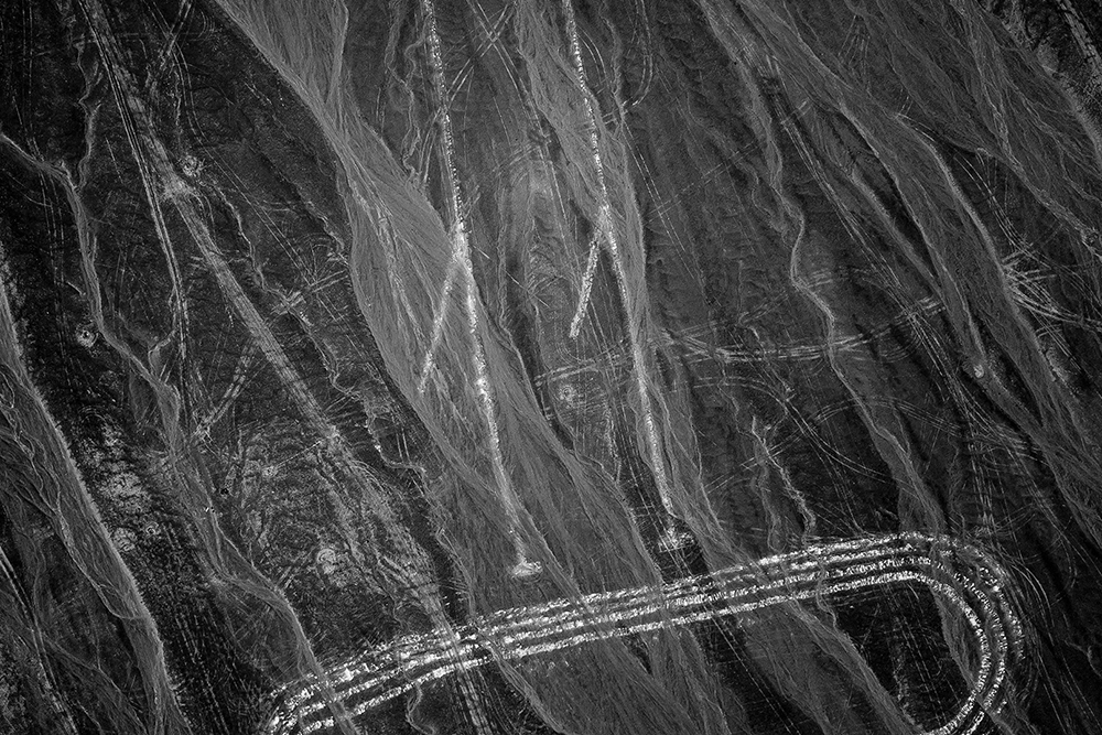 Ejercicios de aridez es un proyecto desarrollado entre 2017 y 2021 que fija su atención sobre la imagen de un inquietante cuchillo corvo de 2 kilómetros de extensión, dibujado minuciosamente con cal sobre el suelo del Desierto de Atacama.